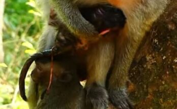 Joyful Mother Monkey Cries Loudly After Successfully Giving Birth to Her Tiny Baby Read More