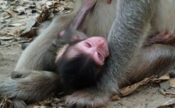 A tiny newborn monkey clings weakly to his mother, his soft cries filled with desperate hunger. His small body trembles as he searches for milk, but his mother has none …